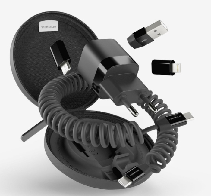 Vonmаhlen Allroundo GaN — это компактный и удобный в использовании аксессуар, сочетающий в себе зарядное устройство мощностью 30 Вт и многофункциональный кабель с переходниками для удобной зарядки самых разных устройств. Комплект переходников позволяет создать до 6 разных конфигураций зарядного кабеля, что делает его по-настоящему универсальным.